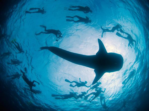 Một nhóm thợ lặn cố gắng theo kịp tốc độ một chú cá mập voi. Loài cá hiếm hoi lớn nhất hành tinh này đến tuổi trưởng thành có thể dài tới 18 mét. Chỉ cần quẫy mạnh đuôi là chúng sẽ bỏ xa các vận động viên bơi lội cừ khôi nhất chỉ trong vài phút. Ảnh của Manu San Felix.